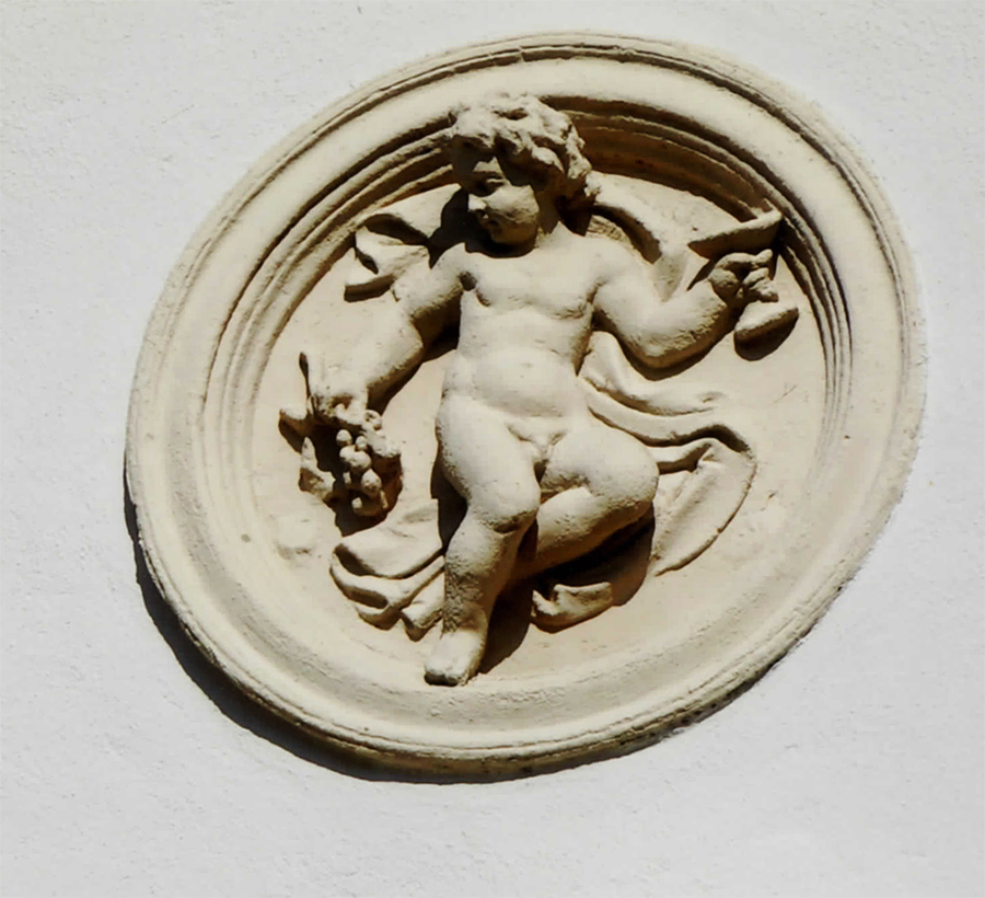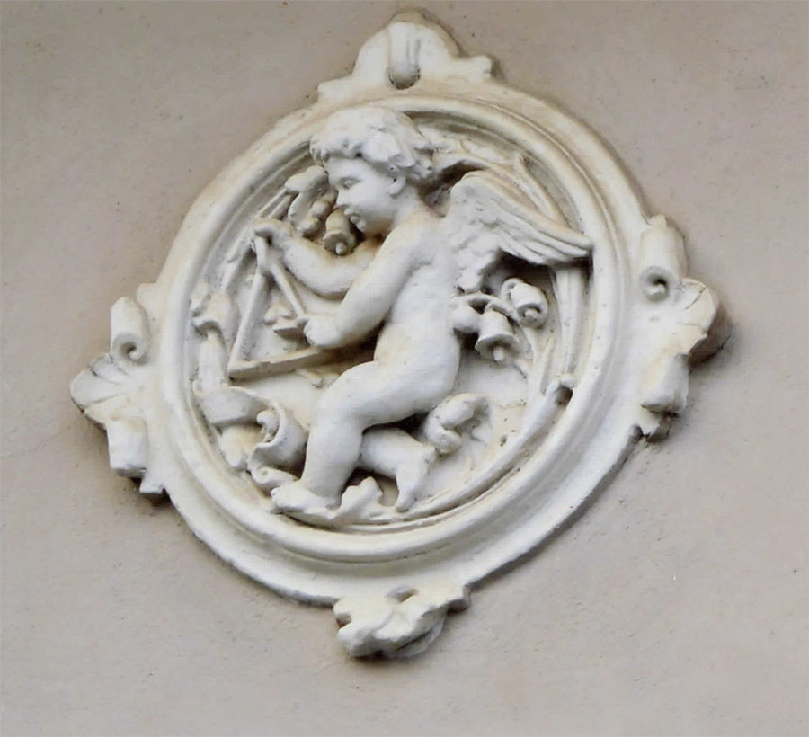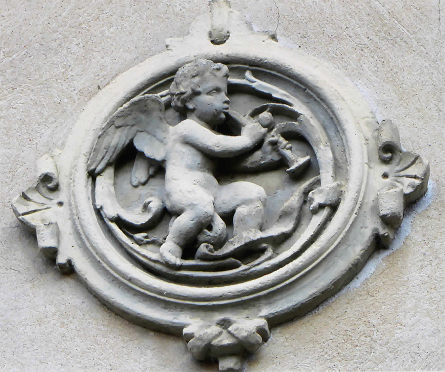 Eine Figur spielt auf einer Lyra, eine andere benutzt ein Blasinstrument (ähnlich einer Trompete) und wieder andere scheinen zu singen oder uns mit einem Kelch zuzuprosten. Auch wenn ein Engel schließlich ein Symbol aus der religiösen Welt ist, sind die Gebäude mit derartigen Medaillons ganz normale Wohnhäuser – das Religiöse schwingt ganz