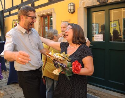 „Wer glaubt, dass sich 22 Jury-Mitglieder immer einig sind, der irrt gewaltig“, plauderte Jens Baumann aus dem Nähkästchen. „Wir haben uns zwar nicht gerade gefetzt, aber es gab durchaus widersprechende Meinungen.“ Mancher scheint sich beim Betrachten der Ausstellung aller eingegangenen Bewerbungen gefragt haben, wieso denn das ehemalige Weingut Kynast immer noch ohne Preis ist. Dazu verrät Baumann aus der Jurysitzung: „Tatsächlich lag uns das hervorragend sanierte Turmhaus als Bewerbung vor, doch die Abstimmung ging am Ende anders aus. Familie Muth, begleitet von Architekt Volker Röhricht, arbeitet sich ja schon seit vielen Jahren mit großem Engagement an dem ehemaligen Weingut ab, Herren-, Gärtner-, Tor- und Badehaus, Park und Weinberg, nun noch das Turmhaus. Wenn es einen Preis gäbe, der dieses unglaubliche Engagement würdigt, müsste er Ensemble-Preis heißen. Doch den sieht unsere Satzung nicht vor.“ Eben, möchte man einwerfen. Das wäre doch ein Grund, den Preis noch ein wenig länger leben zu lassen. Vielleicht liest ja diesen Text der eine oder die andere VolksvertrererIn und stellt einen entsprechenden Antrag im Stadtrat.