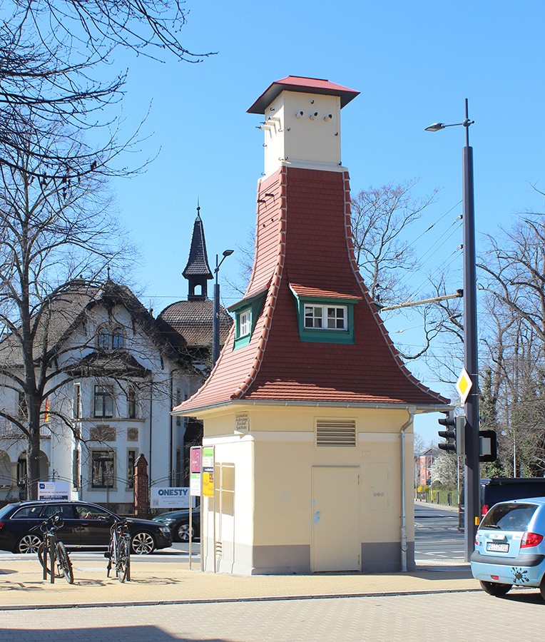 Im Zuge der Sanierung der Meißner Straße am Lindenstern wurden unter Regie der Dresdner Verkehrsbetriebe (DVB) die Gleise geordnet und eine neue Haltstelle errichtet. „Irgendwo“ war die erforderliche Steuertechnik unterzubringen. Die DVB wollten zunächst die Fassade des Gasthauses „Zu den Linden“ mit den üblichen Kisten verunstalten. Dagegen legten die Planer der Stadt ihr Veto ein und brachten stattdessen eine neue Nutzung des alten Trafohauses ins Gespräch. Gesagt, getan. Die Stadt übernahm Planung und Ausführung, die DVB zahlten.