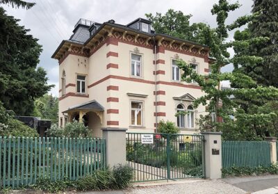 Villa Heinrich-Heine-Straße 10: Das 1894 als Witwensitz von F.A. Bernhard Große geplante und gebaute Haus ist eine der am aufwendigsten gestalteten gründerzeitlichen Villen in der Niederlößnitz: Fensterumrahmungen im Renaissancestil, Zierbänder, Eckbossierungen, Drempel aus farbigen Klinkern, Dachdeckung mit Trapezschiefer sowie in „Bogenschnittschablonendeckung“, Regenrinne und Fallrohre aus Titanzink, Ziergeländer am Dachfirst, Fassadenstuck. Manche Stuckelemente waren stark beschädigt oder schon nicht mehr vorhanden. Die Handwerker nahmen von den Resten Silikonformen, um verloren Gegangenes nachzubilden. Zu DDR-Zeiten hatte die Fassade einen Spritzputz bekommen. Dabei störten sich die Putzer an Engelsköpfen über den Fensterbekrönungen und schlugen sie kurzerhand weg. Jetzt sind die Engelsköpfe wieder da. Da sich die Denkmalschutz-Ausweisung auch über den Garten erstreckt, wurde auch dieser nach historischem Vorbild hergestellt, das betraf Brunnenschale, Gartenwege und Beeteinfassungen. Hier haben sich die Eigentümer Dr. Beate und Felix Gängler, unterstützt von Thomas Scharrers Architekturbüro, ein Gesamtkunstwerk geschaffen.