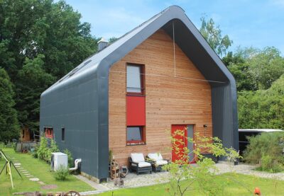 Zweimal gab es in der Jury eine Pattsituation, sowohl beim neuen Bauern als auch bei Denkmalpflege und Sanierung. Da steht doch auf der Morgenleite 10 ein Neubau mit einer eigenen, sehr modern anmutenden Handschrift sowie zeitgemäßen Materialien. „Die zurückgesetzte Giebelwand, die mit ihrer rötlichen Holzverschalung und den signalroten Tür- und Fensterelementen farblich mit der Dachhaut kontrastiert, erweckt den Eindruck eines dreifach gefalteten Umschlags oder Überzugs, mit dem das Einfamilienhaus eingepackt oder eingewickelt wurde“, heißt es in der Bewerbung, die Dr. Michael Steinbusch, Mitarbeiter der Stadtentwicklung im Rathaus sowie Jury-Mitglied, unterstützt hatte. Die Eigentümer Juliane Czychi und Jörg Heße, freuen sich zudem, dass es ihrem Architekten Thomas Scharrer gelungen ist, trotz aller liebevollen Verspieltheit ein kompaktes Zuhause zu errichten, das für einen kleineren sechsstelligen Euro-Betrag zu haben war.