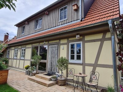Auch neu gebaut, aber ganz anders, haben Antje Döring und Ralf Pannach auf der Serkowitzer Straße 16. Doch gaben sie ihrem Gebäude, das unmittelbar an der Straße steht, ein traditionelles Gewand in Fachwerk-Bauweise und verwendeten Materialien aus dem Vorgängerbau. Das langjährige Jury-Mitglied Dr.-Ing. Grit Heinrich hatte sich für diese Bewerbung (und vier andere) stark gemacht. Sie formuliert ihren Eindruck folgendermaßen: „Obwohl es nagelneu ist, könnte man meinen, es steht schon immer da. Es trumpft nicht auf, sondern passt sich ganz selbstverständlich ein in die umgebende dörfliche Struktur nahe des Serkowitzer Brunnenplatzes.“